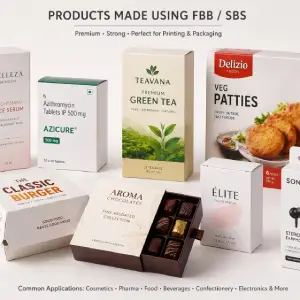 FBB (Folding Box Board) and SBS (Solid Bleached Sulphate) are high-quality paperboards widely used in premium packaging and printing applications. Both are manufactured using multiple layers of pulp and feature coated surfaces that provide excellent printability, smooth finish, and strong visual appeal.